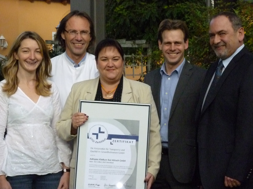 Das Fachkrankenhaus und das Zentrum für orthopädische und rheumatologische Rehabilitation im Asklepios Klinikum Bad Abbach haben für ihr hervorragendes Qualitätsmanagement erneut das KTQ-Siegel erhalten. Die Auszeichnung der Kooperation für Transparenz und Qualität im Gesundheitswesen (KTQ) garantiert Patienten eine optimale Versorgung von der Aufnahme bis zur Entlassung und wurde bayernweit bislang erst an vier Rehakliniken und 60 Krankenhäuser vergeben. Träger des Zertifizierungsverfahrens, das jeweils für drei Jahre gültig ist, sind Bundesärztekammer, Deutsche Krankenhausgesellschaft, Deutscher Pflegerat sowie die Spitzenverbände der gesetzlichen Krankenversicherungen.