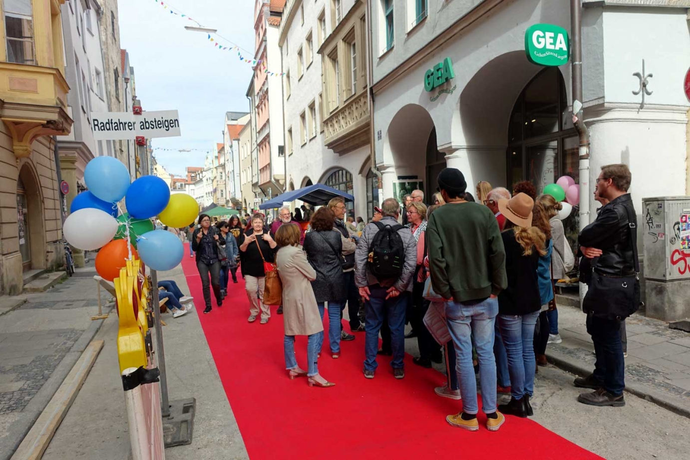 Während der drei bestens frequentierten Straßenführungen lenkte Stadtführerin Christa Zehentbauer vom Verein kulttouren e.V. die Aufmerksamkeit auf viele, meist verborgene Details. Denn die Wahlenstraße birgt auf ihren rund 200 Metern Länge Welterbe pur: Bereits 1138 erwähnen historische Quellen den Straßennamen. Der goldene Turm in der Straßenmitte, einst Zeichen wirtschaftlicher Macht und großen Wohlstands, ist mit seinen rund 50 Metern der höchste mittelalterliche Wohnturm nördlich der Alpen.