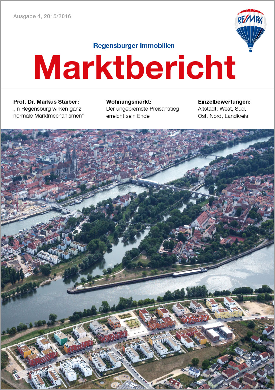 Der 4. Regensburger Immobilien-Marktbericht erscheint am Sonntag, 4. Oktober. Er liegt allen Ausgaben der neuen RE/MAX Immo-News bei und wird in der Region mit einer Gesamtauflage von 170.000 Heften breit gestreut. Weitere Exemplare gibt es kostenlos im RE/MAX-Büro, Telefon 09 41/30 77 00.