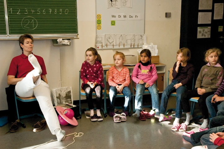 Dr. Silke Dröse schult Erstklässler im richtigen Umgang mit den Füßen