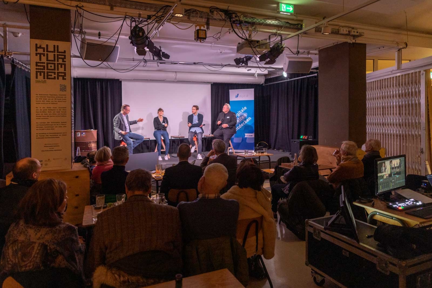 Das abschließende Podiumsgespräch der Referenten vertieft die verschiedenen Themen des Abends. Das Live- wie das Onlinepublikum haben Gelegenheit, sich mit Fragen einzubringen. Christian Omonsky, Partner der Agentur faust | omonsky kommunikation, konzipiert, organisiert und moderiert die Veranstaltung.
