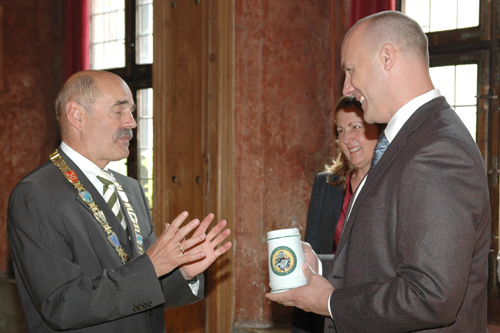 Oberbürgermeister Hans Schaidinger möchte das traditionell gute Verhältnis der Stadt zu den amerikanischen Soldaten in der Oberpfalz stärken. Deswegen hat er die Kommandeure der Garnisonen Grafenwöhr und Hohenfels am Montag, 10. September 2012, zu einem offiziellen Empfang ins Alte Rathaus eingeladen. Beide Offiziere, Oberst James E. Saenz in Grafenwöhr und Oberstleutnant John J. Strange in Hohenfels, sind neu in der Region. Zu Jahresbeginn haben sie ihre Dienstposten angetreten. Im Anschluss an den offiziellen Teil im Alten Rathaus nutzen Werbegemeinschaft (WGR) und Stadtmarketing Regensburg die Gelegenheit, den Delegationen die Stadt insgesamt und speziell das UNESCO-Welterbe bei einer Stadtführung näher zu bringen. In Vertretung von Oberst Saenz nimmt seine Stellvertreterin, Kathy Aydt, den Termin wahr.