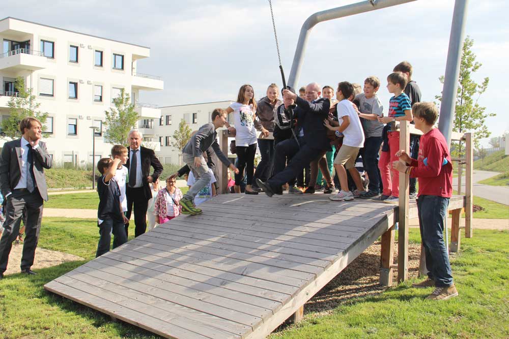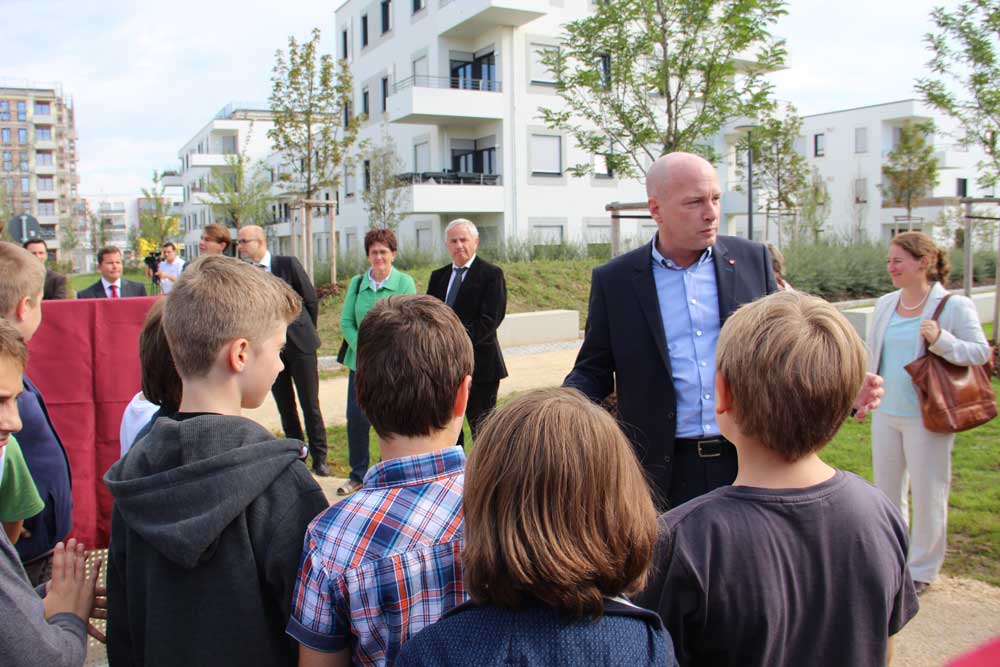 Der viel zu warme und trockene Juli in Regensburg war schuld: Obwohl baulich schon seit Frühsommer fertig, konnten Oberbürgermeister Joachim Wolbergs und Bürgermeister Jürgen Huber den Landschaftspark samt Spielplatz im CANDIS-Areal erst am Freitagvormittag eröffnen. „Der Regen im August war dringend nötig, damit Gras und Großpflanzen endlich ordentlich anwachsen“, erläuterte CANDIS-Projektentwickler Ferdinand Schmack. „Doch jetzt steht den Bewohnern des ganzen Stadtostens diese wichtige Naherholungsmöglichkeit zur Verfügung.“