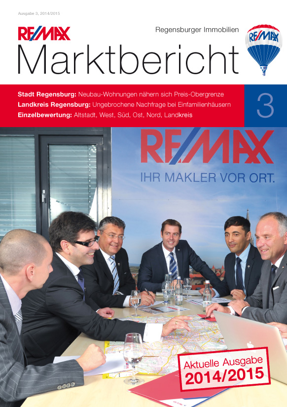 Der 3. Regensburger Immobilien-Marktbericht erscheint am Samstag, 27. September. Er liegt allen Ausgaben der RE/MAX Immo-News bei. Weitere Exemplare gibt es kostenlos im RE/MAX-Büro,Telefon 09 41/30 77 00.